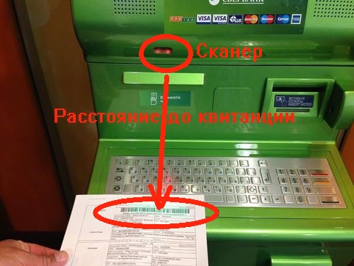 Поднесите к сканеру терминала Сбербанка штрих-код на расстоянии не менее 15 см.